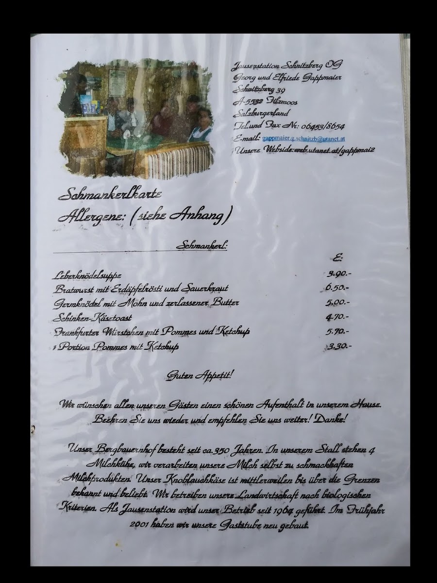 Welcome to Jausenstation Schnitzberg, a charming café nestled in the tranquil hills of Filzmoos, Austria. Renowned for its cozy atmosphere and stunning views, this hidden gem offers an irresistible menu that will delight any wanderer. Among the highlights, the Kaiserschmarrn stands out as a must-try, with patrons raving about its perfect preparation that makes each bite a sweet indulgence. The rich and flavorful Frittatensuppe and the classic Spiegelei with Speck reflect the kitchen's commitment to using fresh ingredients crafted with love. The friendly service enhances the overall experience, making every visitor feel at home. While parking can be challenging, the scenic drive adds to the allure of this retreat. Whether you’re enjoying a sunny day on the terrace or warming up inside, Jausenstation Schnitzberg promises a delightful culinary adventure that lingers long after your visit.